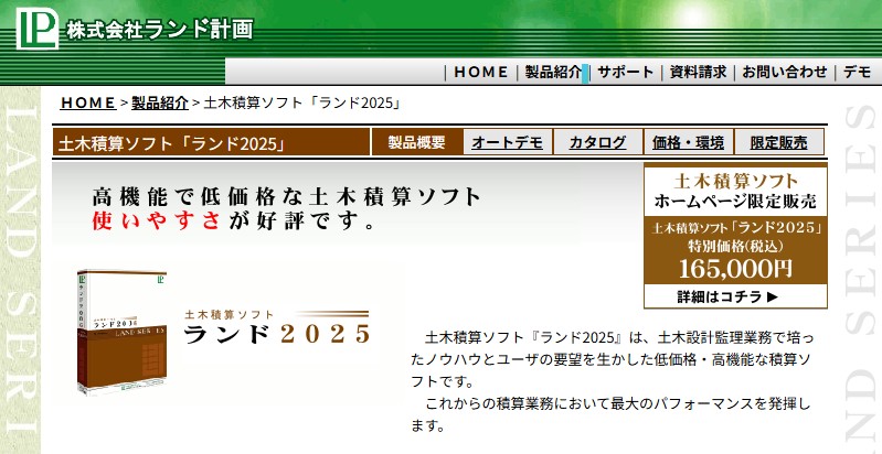 | 機能 | 工事管理、設計書取込、単価表作成、連動型条件選択機能、その他 |
