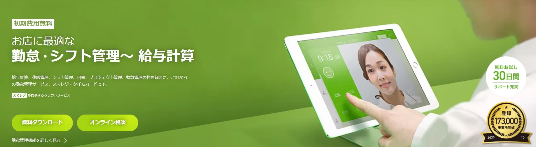 | 機能 | 勤怠管理、給与計算、シフト管理、変形労働時間制、休暇管理、日報管理、プロジェクト管理、マイナンバー管理、労務アラート、年末調整、その他 |