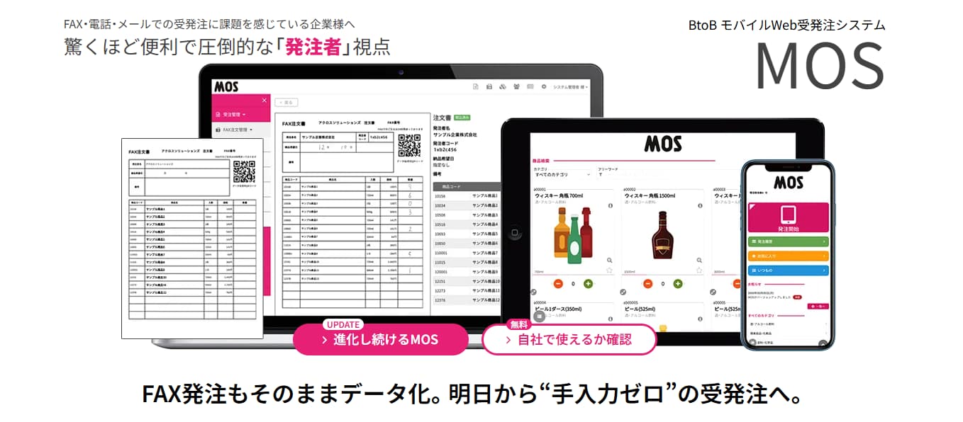 『MOS』は、発注業務がより簡単にできるBtoB向けの受発注パッケージシステムです。