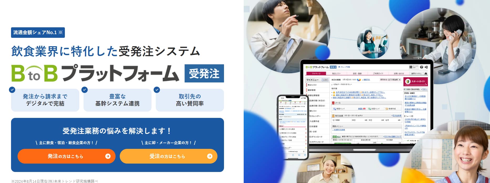 『BtoBプラットフォームの受発注機能』は、Web上で発注・受注が完了する受発注システムです。