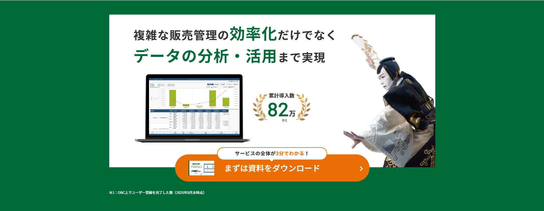 商蔵奉行クラウドを含むOBC奉行シリーズ全体の累計導入数は、82万社です。