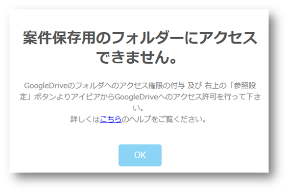 ※今までは、アイピアから連携したフォルダにアクセスが可能でしたが、今後は、ユーザー毎に初回のみ、連携済フォルダへのアクセスを許可する設定が必要となります。