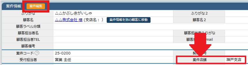 また、案件店舗を変更したい場合は、案件情報の「編集」から「案件店舗」を変更してください。