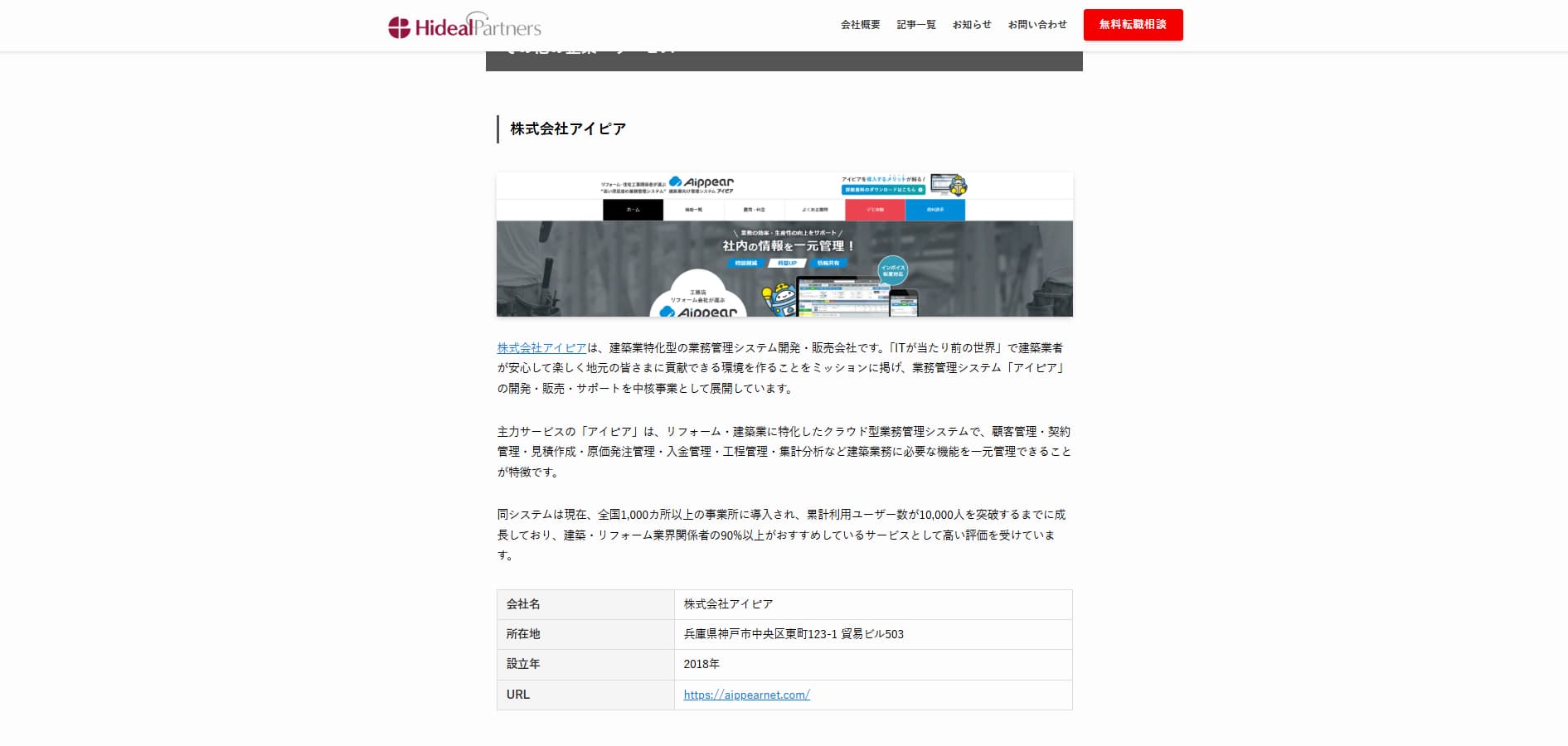 株式会社アイピアは、建築業特化型の業務管理システム開発・販売会社です。「ITが当たり前の世界」で建築業者が安心して楽しく地元の皆さまに貢献できる環境を作ることをミッションに掲げ、業務管理システム「アイピア」の開発・販売・サポートを中核事業として展開しています。