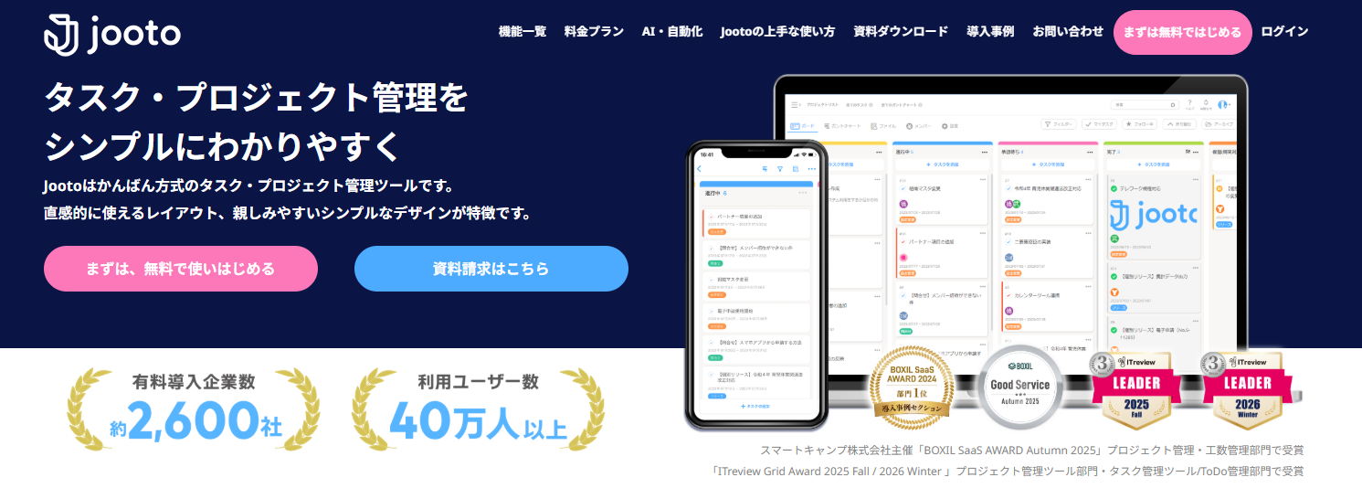 『Jooto』はカンバン方式のタスク・プロジェクト管理ツールです。